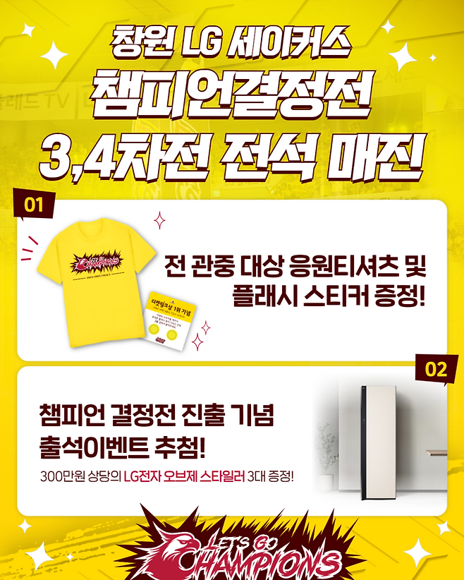 앞서 펼쳐진 4강 플레이오프 1, 2차전을 스마트티켓으로 관람한 세바라기 팬 대상으로, 경기 종료 후 추첨을 통해 300만원 상당의 LG전자 오브제 스타일러 총 3대를 지급한다.