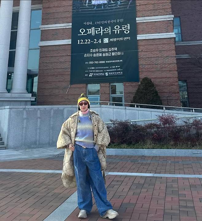 또, 김호영은 귀를 덮는 모자를 착용해 포근하고 따뜻한 코디를 완성했습니다.