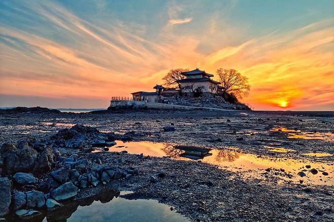 이곳의 대표적인 한국 문화유산은 바로 간월암입니다. 간월암은 원효대사가 창건하였으며, 조선 초기에 무학대사가 중창하여 ‘간월암’이라는 이름을 붙였습니다. 이 사찰은 바닷물이 빠지면 육지와 연결되는 길이 열려 접근할 수 있는 독특한 입장 방식이 매력적인데요. 다시 물이 차는 만조 시에는 섬으로 되돌아와 신비로운 풍경을 선사합니다.