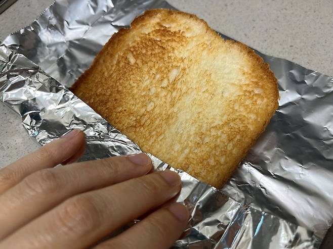 호일에 구운 식빵을 감싸주세요. 바싹 구운 식빵을 그대로 두기보다 호일에 감싸 주면, 빵 부스러기가 흩어지는 것을 막으면서도 공기와 냄새는 통과할 수 있어 사용이 훨씬 깔끔해집니다.
