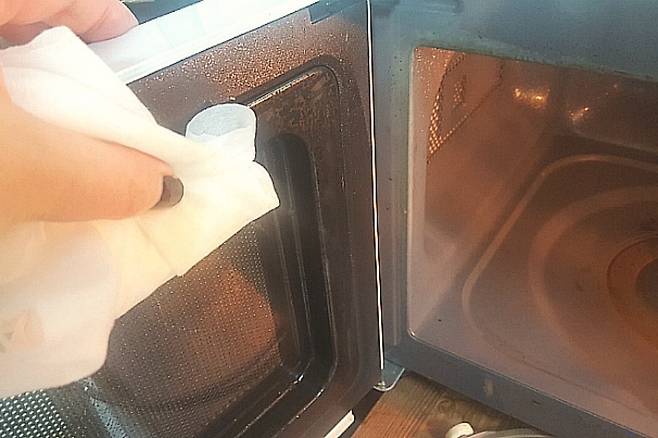 잠시 후 열어보면 불쾌한 냄새는 사라지고 귤의 상쾌한 냄새가 남는데요. 머그컵 물로 인해 수증기도 생기니 물티슈로 닦아주시면 전자레인지 청소 쉽게 할 수 있습니다^^*