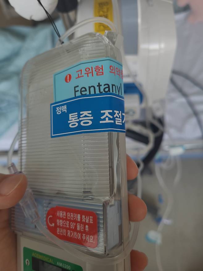 그리고 수술전에 통증이 심하면 따로 진통제 하나 더 달아준다해서 비급여로 펜타닐 진통제 달았는데