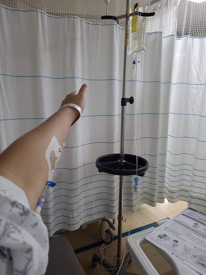 조직검사 후 CT촬영때문에 주사바늘 달았었는데 왼팔에 주사 잡아야 함