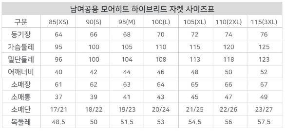 보온성 甲 초경량 모어히트 자켓
