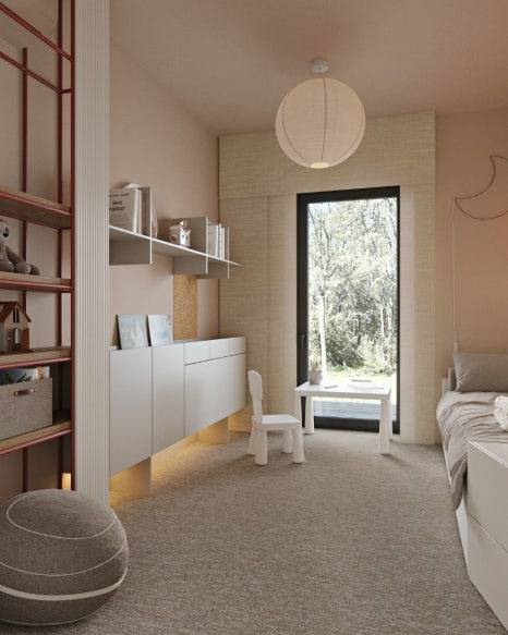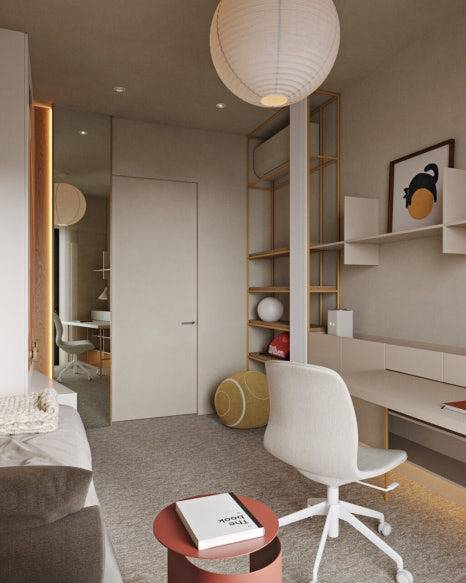아이방은 실용성과 확장성에 중점을 두었다. 작은 공간 안에서도 수납과 학습, 휴식을 모두 충족시킬 수 있도록 설계되었으며, 변화를 수용할 수 있는 유연함까지 갖췄다. 아이가 자라면서 방의 쓰임새도 자연스럽게 바뀔 수 있도록 디자인된 것이 특징이다.