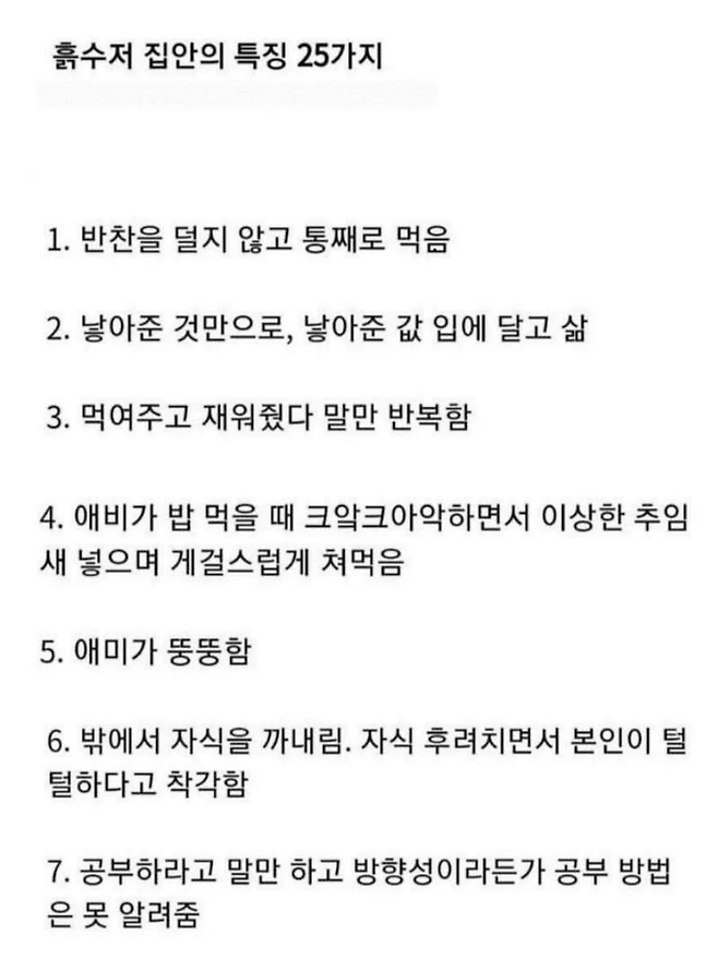 흙수저 집안의 특징 25가지