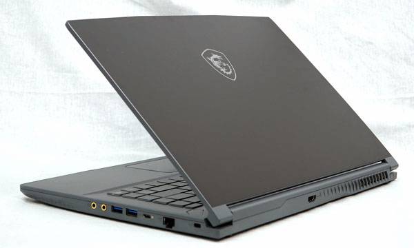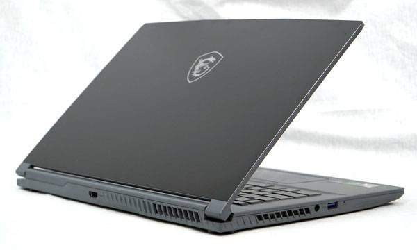 본체 크기는 359(W) x 254(D) x 21.7(H)mm에 무게는 약 1.86kg으로 색상은 씬(Thin) 시리즈의 새로운 컬러인 코스모스 그레이, 상판에는 MSI 특유의 드래곤 게이밍 로고가 자리잡고 있다.