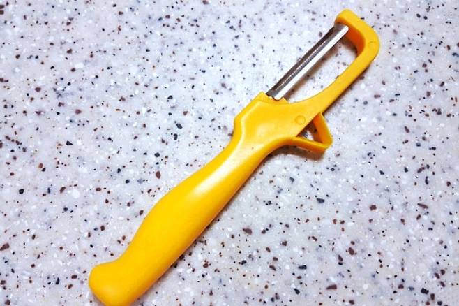 이것은 바로 감자칼이랍니다. 감자 껍질 벗길 때뿐 아니라 양파를 얇게 채 썰때도 아주 유용하답니다.
