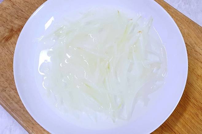 양파를 생으로 드시려는데 너무 맵다면 찬물에 10분 정도 담갔다가 드시면 매운기가 사라집니다. 고깃집처럼 양파 얇게 썰고 싶다면 감자칼 활용해 보세요^^*