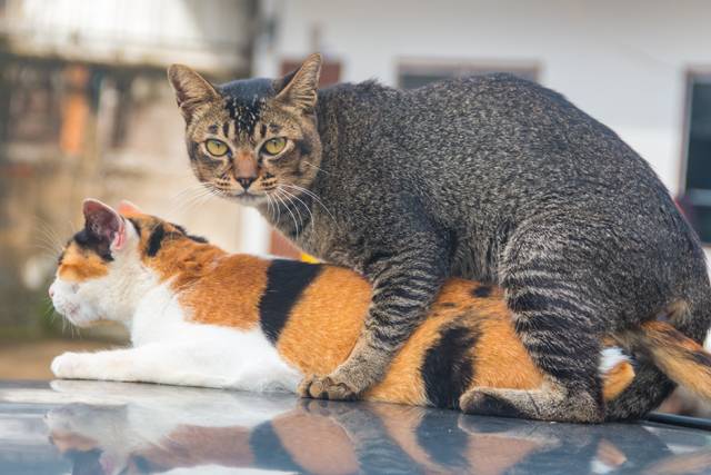 고양이들은 순위매김을 위해 마운팅 행동을 하며 이로써 자신이 상대 고양이보다 우위에 있음을 어필합니다.