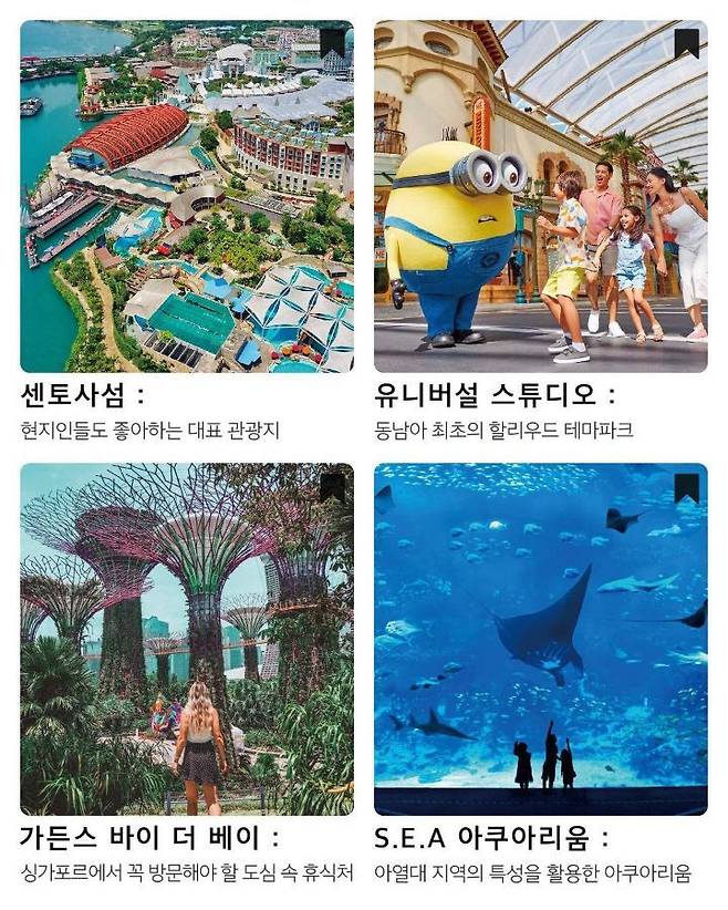 유니버설 스튜디오, 실로소 해변, S.E.A 아쿠아리움 등 다양한 즐길 거리.