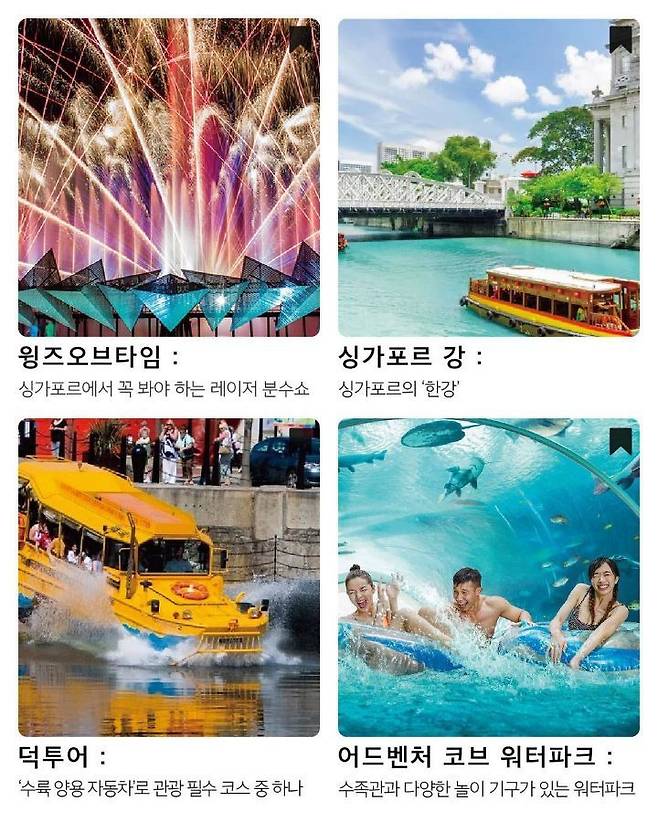 관광 산업: 마리나 베이 샌즈, 센토사, 나이트 사파리 등 유명 관광지가 많습니다.