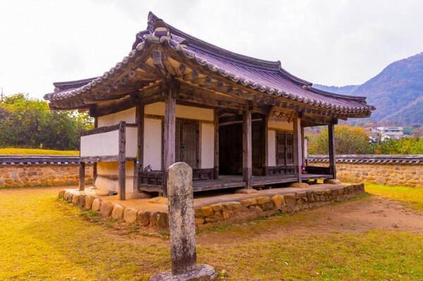 수월정 앞마당에서는 과거 유배지였던 이곳의 역사적 의미를 되새기며 주변 풍경을 감상할 수 있습니다. 봄철에는 정자 주변으로 피어나는 꽃들과 함께 고즈넉한 분위기를 느낄 수 있어요. 이곳은 역사의 흔적과 자연이 조화롭게 어우러진 공간으로, 방문객들에게 특별한 경험을 선사합니다.