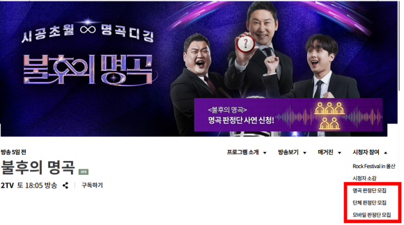 포털사이트에서 '불후의 명곡' 검색 후 공식 홈페이지 접속