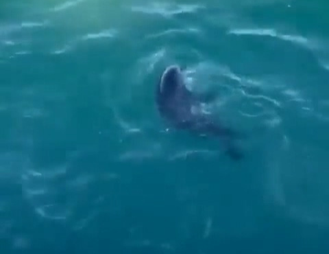 물개 한 마리가 수면 위로 고개를 내밀더니 세차에 고개를 휘어 뭔가를 날려버립니다.