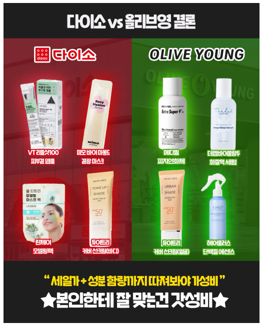 🛍 다이소는 "모든 걸 싸게 파는 생활 백화점"💄 올리브영은 "요즘 인기 있는 뷰티템 총집합"