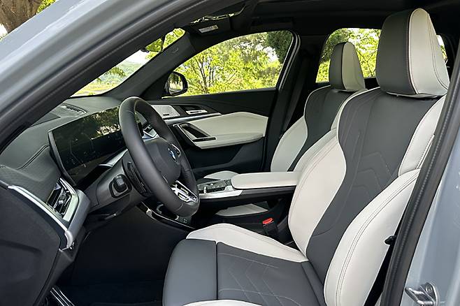 새로 개발한 시트는 5인승. 착좌감도 좋지만, 풀 버킷 타입의 홀드성이 우선이다. 히프 포인트가 X1보다 약간 낮은 느낌이다. 과거에는 이런 시트에 앉으면 달리고 싶어졌었다. 가죽 질감의 인공 소재들을 선택할 수 있으며, 스포츠 시트, 메모리 기능이 있는 전동 시트, 램버 서포트, 마사지 기능도 선택할 수 있다. 정숙성과 탑승자 보호 기능도 향상되었으며, 운전석과 조수석 사이에도 에어백이 표준 장비된다.