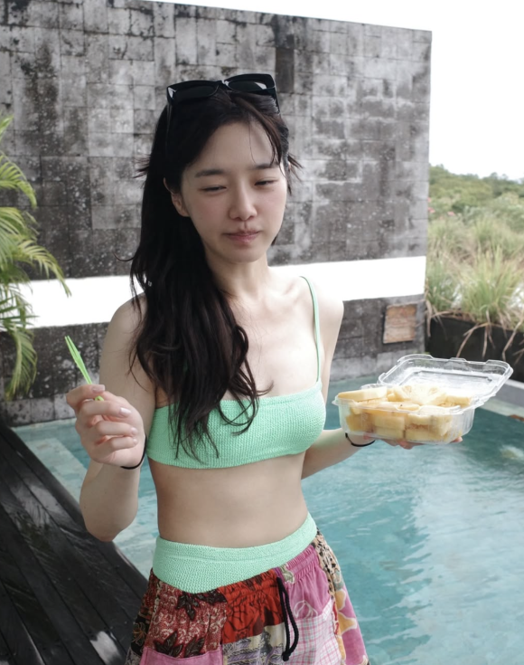 박규영의 이번 비키니룩은 단지 몸매를 뽐내는 패션이 아니라, 자신감 있는 휴양지 스타일의 정석을 보여준다.