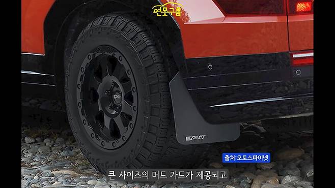 강렬한 오렌지 색상에 블랙 몰딩과 휠이 더해져 오프로드에서 확실히 주목받을 만한 디자인을 자랑한다.