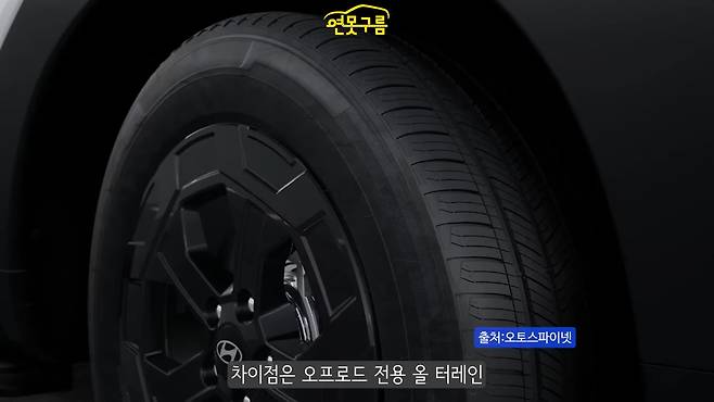 싼타페 XRT의 가장 큰 특징은 올 터레인 타이어다. 이는 국내 양산차에서 처음 적용되는 것으로, 과거 포드 랩터 같은 강력한 오프로드 차량에서나 볼 수 있었던 디자인이다.