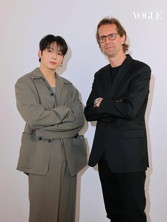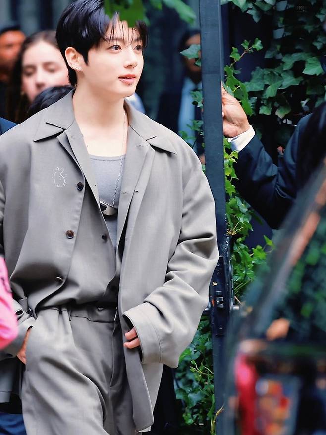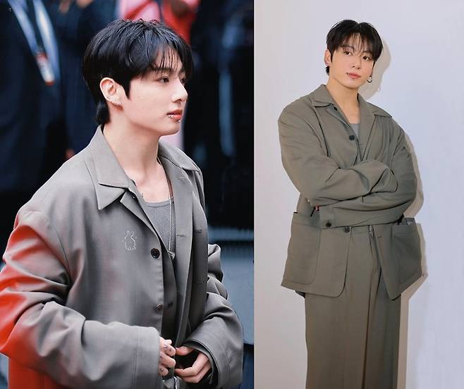 이날 정국은 여유로운 테일러링과 유려한 라인의 미니멀하면서도 모던한 미학을 완벽하게 구현한 깔끔한 오버사이즈 슈트룩으로 등장, 순식간에 소셜 미디어에서 뜨거운 반응을 불러일으켰다.