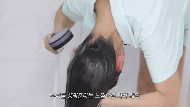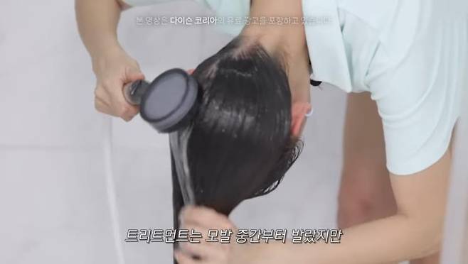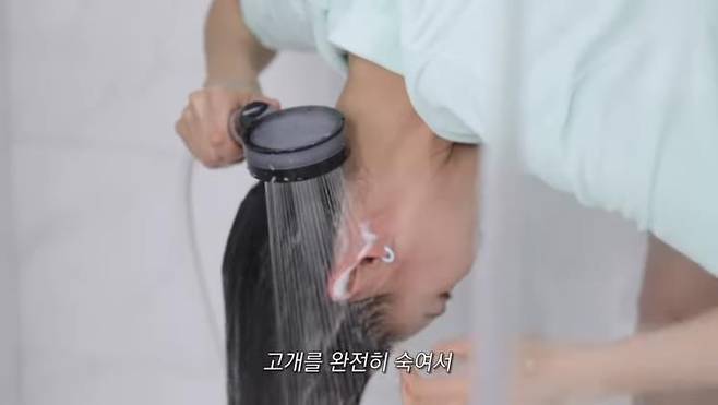 나는 샴푸를 할 때 어떤 자세로 할까? 한혜진은 허리를 숙이고 린스까지 마무리한다. 이유는 얼굴과 등에 샴푸가 닿아 트러블이 생기는 것을 예방하기 위해서라고. 트리트먼트를 헹궈낼 때는 두피까지 다시 헹궈준다는 느낌으로 꼼꼼히 씻어낸다.
