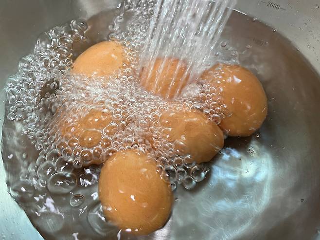 반숙으로 드시고 싶다면 물이 끓은 후 7~8분 이내로 조리하세요. 7분 이내면 너무 안 익게 되므로 7~8분 사이로 맞춰줍니다. 그리고 건져내서 바로 찬물에 넣어서 열기를 식힙니다.