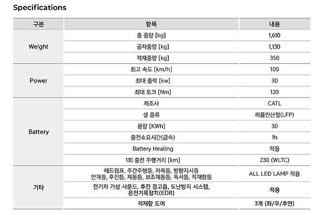 다소 비싼 금액인데, 올해 경형 화물 전기차의 국고 보조금이 800만원이며, 지자체 보조금 180만원(서울)~1,150만원(경남)인 점을 고려하면 980만원~1,950만원 할인 혜택을 예상해볼 수 있겠다. 이 경우 1천~2천대 실구매가를 형성한다.