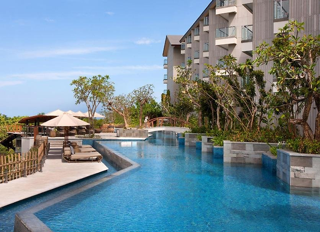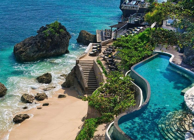 발리의 대표적인 럭셔리 리조트인 아야나 리조트 (AYANA Resort Bali)는 발리 전통 스타일의 건축과 조경이 돋보이는 곳이에요. 이곳은 커플 여행이나 신혼여행객들에게 특히 인기가 많습니다. 넓게 펼쳐진 정원과 해변 절벽 위에 자리한 인피니티 풀은 발리의 아름다움을 그대로 느끼게 해주죠.