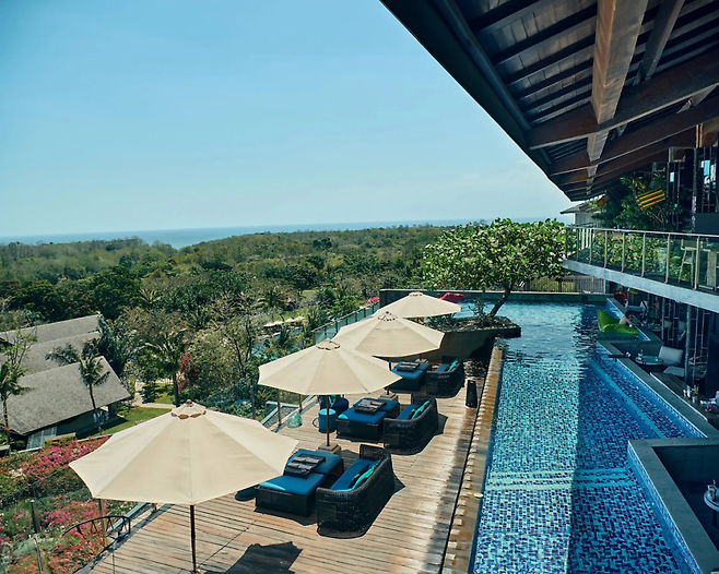 아야나 세가라 (AYANA Segara Bali)는 2022년에 오픈한 아야나 리조트 중 가장 최신 숙소입니다. 숲과 바다가 한눈에 보이는 고지대에 위치해 있어 뷰가 정말 탁 트여있어요. 객실 인테리어는 발리 전통의 클래식한 매력과 모던함이 조화를 이뤄서, 최신 호텔답게 세련된 느낌을 주는 것이 특징이에요.