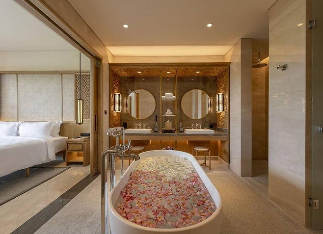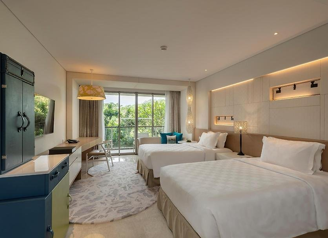 아야나 세가라 (AYANA Segara Bali)는 2022년에 오픈한 아야나 리조트 중 가장 최신 숙소입니다. 숲과 바다가 한눈에 보이는 고지대에 위치해 있어 뷰가 정말 탁 트여있어요. 객실 인테리어는 발리 전통의 클래식한 매력과 모던함이 조화를 이뤄서, 최신 호텔답게 세련된 느낌을 주는 것이 특징이에요.