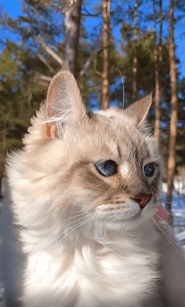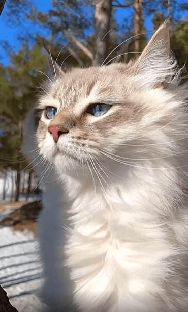 잔잔한 겨울바람이 불어오는 어느 날, 한 마리 고양이가 바깥에 조용히 앉아 있습니다. 주변은 소란스럽지 않고, 바람에 흔들리는 나뭇가지와 잔잔한 공기 소리만이 배경을 채우고 있죠. 고양이는 말없이 한 방향을 바라보며 가만히 앉아 있는데, 그 부드러운 털이 바람을 따라 살짝살짝 흔들립니다. 귓가를 스치는 찬 바람을 느끼는지, 고양이는 아주 천천히 눈을 감습니다.