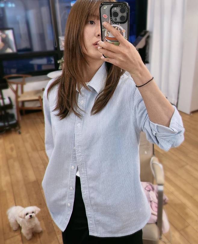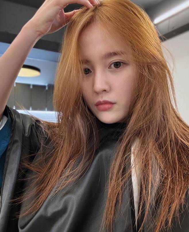 중간 길이의 머리에 가벼운 층을 더한 스타일을 한 남보라는 머리색에도 변화를 주어 부드러운 갈색톤인 '골드 브라운'으로 염색했습니다.