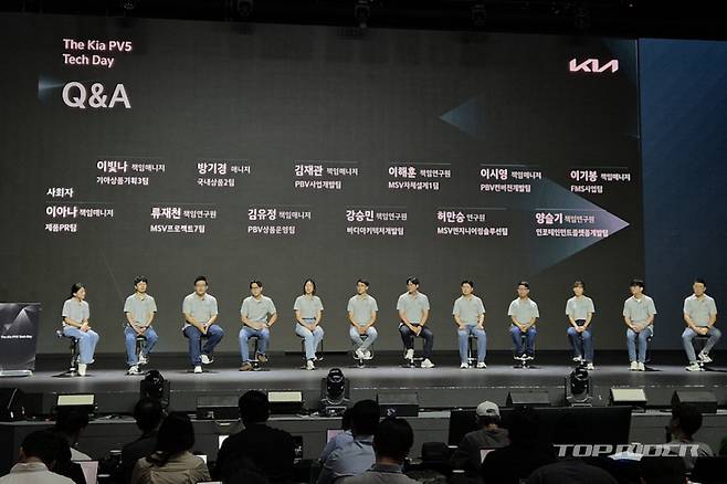 A2. 9인승에 대한 니즈는 개발단계에선 없었습니다. PPD라는 이벤트를 통해서 기아가 전개할 PBV 라인업에 대해서 고객들한테 설명을 드렸기 때문에 PV5에서 9인승에 대한 니즈는 없었습니다. 다만 다른 PBV 라인업을 통해 그러한 니즈를 충족할 수 있도록 준비 중입니다. 그래서 현재 기준으로 PV5 9인승은 추가로 개발되고 있지 않습니다.