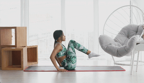 매트에 엉덩이를 대고 앉아 손바닥을 뒤에 짚어 바닥에 고정합니다. 상체를 뒤로 젖히면서 다리를 공중에 띄워 V자 형태를 만듭니다. 복부 힘을 이용해 상체를 일으키며 무릎을 당기고, 복부를 수축한 뒤 다시 원래 자세로 돌아갑니다.