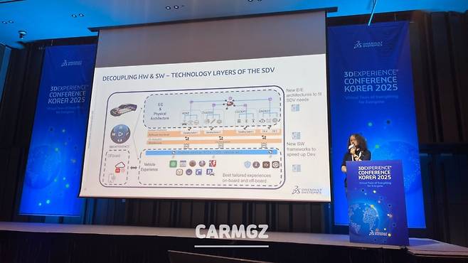 AI 기반 버추얼 트윈 기업 다쏘시스템이 지난 5월, 서울 코엑스에서 ‘3D 익스피리언스 코리아 컨퍼런스 2025’를 개최했다. 모빌리티 업계 전반에 걸쳐 SDV(소프트웨어 기반 자동차, Software Defined Vehicle)의 개념이 언급되는 시대. 과연 다쏘 시스템은 이 시장을 어떻게 보고 있을지 살펴봤다.