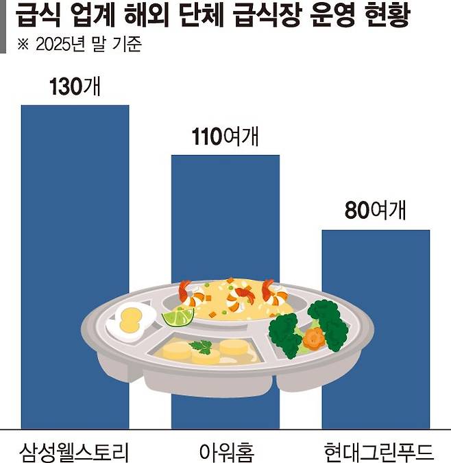 세계적인 K푸드 인기와 맞물려 각 사의 해외 급식 사업 매출은 상승세다. 아워홈의 2021~2024년 해외 급식장 매출은 연평균 8% 성장했고, 삼성웰스토리는 같은 기간 연평균 3.6%의 꾸준한 매출 증가세를 보였다. 현대그린푸드는 2021년 500억원 수준이던 해외 단체급식 매출이 지난해 두 배 가까이 뛰었다.