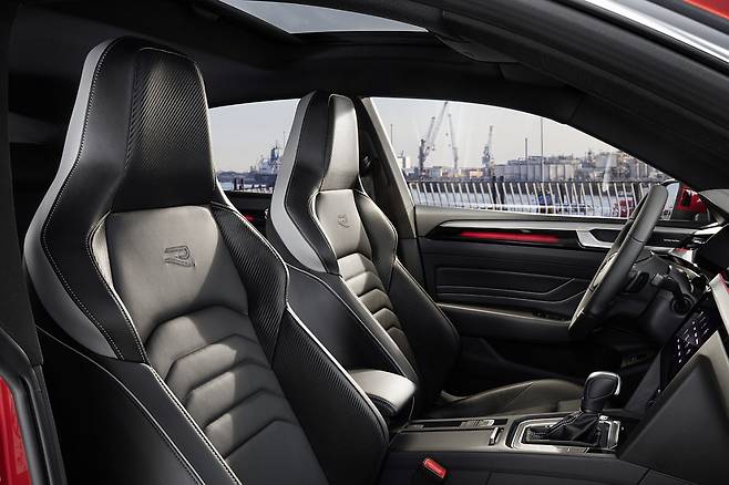 인테리어 역시 R-Line 디자인 요소가 적용돼 외관의 스포티한 감각이 이어진다. 스티어링 휠 스포크 하단에 R-Line 로고를 배치했으며, 그립감을 위해 9시와 3시 방향에 타공 가죽을 적용했다. R-Line 전용 시트는 티타늄 나파 가죽과 함께 운전자의 몸을 단단하게 지지한다.