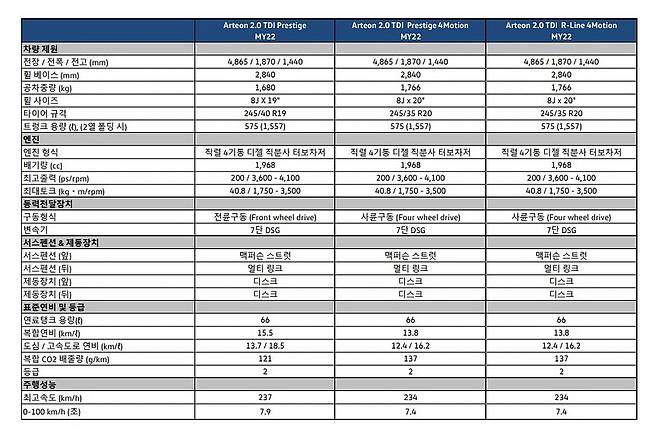 신형 아테온 R-라인 4모션은 이전 세대 대비 질소산화물을 80% 저감시킨 차세대 EA288 evo 2.0 TDI 엔진을 탑재해, 배출가스는 낮추고 성능은 강화했다. 최고출력은 이전 세대 보다 10마력 상승한 200마력, 최대토크 40.8kgm다. 국내 복합연비 13.8km/ℓ(도심 12.4, 고속 16.2)로 실주행시 연료 효율성은 더욱 뛰어나 운전자의 유류비 부담을 덜어준다.