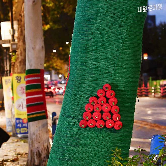 60그루μ κ°λ‘μκ° λΉ¨κ°μκ³Ό μ΄λ‘μ λ¨κ° μ·μ μ