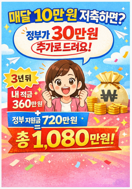 “매달 10만 원만 저축해도 정부가 최대 30만 원을 더 얹어준다”는 이야기를 한 번쯤은 보셨을 거예요.