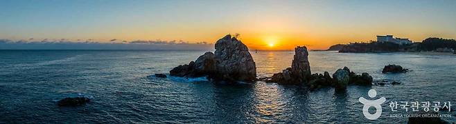 수평선 위로 떠오르는 태양이 바위 뒤에서 얼굴을 내밀 때, 그 순간을 담는 카메라 셔터 소리만이 조용한 바다를 깨웁니다. 인근에는 촛대바위 전망대와 해안 데크길도 조성되어 있어, 짧은 트레킹을 겸해 감상하기에도 좋습니다.
