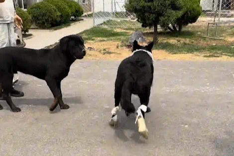 강아지들은 처음에 이 낯선 '신발'에 적응하지 못해 걷는 모습이 무척 코믹했습니다. 네 발이 제대로 움직이지 않아 흔들거리는 모습이 마치 걸음마를 배우는 아기 오리 같기도 하고, 술에 취한 사람처럼 이리저리 비틀거리는 모습이었습니다!
