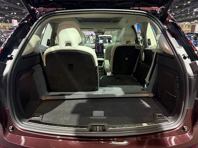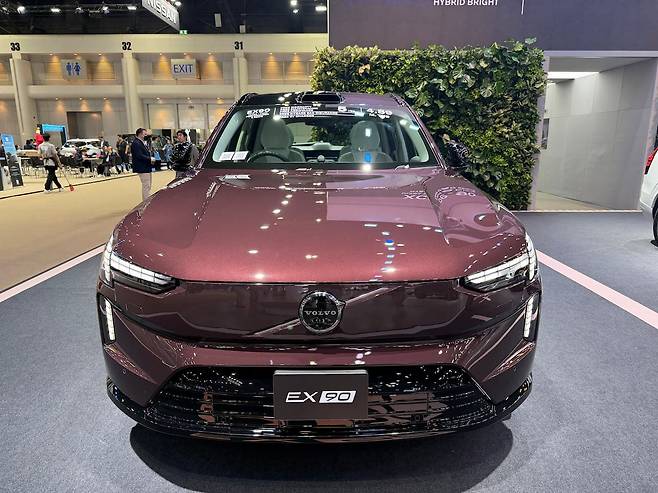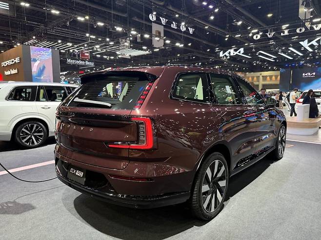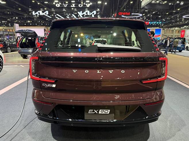 최근 방콕 국제 모터쇼에서 공개된 EX90는 멀베리 레드(Mulberry Red) 색상으로 마감되었다. 이 색상은 검붉은 색상에 반짝이는 하이라이트가 있어 모터쇼 조명 아래에서 더욱 돋보였다.