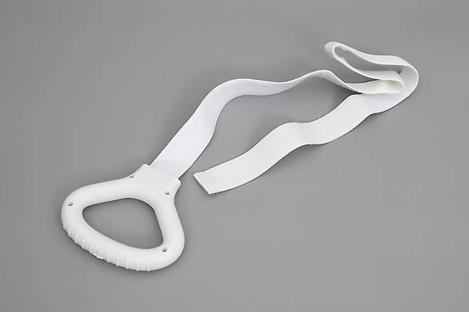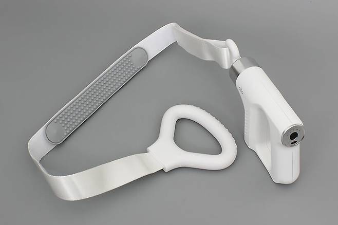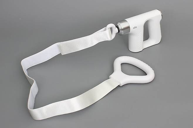 기본 구성품으로 함께 제공되는 마사지 벨트는 탄력 없이 단단한 벨크로 벨트 끝에 큼직한 손잡이가 달려있고, 반대쪽 끝에도 벨크로 처리가 되어있어서 끝부분을 감아서 고리 모양을 만들어줄 수 있다.