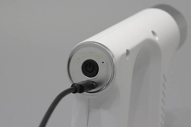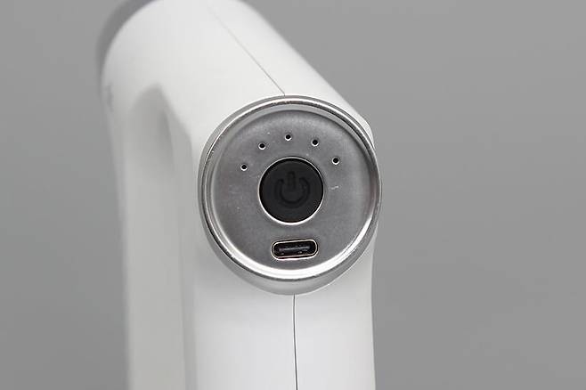 본체 손잡이 뒷부분에는 전원 버튼이 가운데 있고, 버튼 윗부분에는 강도 단계 표시등이, 버튼 아래쪽에는 충전 단자가 있다. 충전 단자는 USB C타입으로, 스마트폰 충전 케이블을 함께 사용할 수 있다.