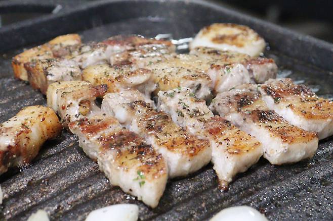 치즈 한 조각, 고소하고 맛있죠. 삼겹살도 고단백 식단이라고 해서 자주 드시는 분들 많으실 거예요.
