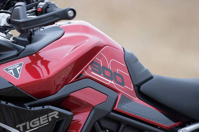처음 신형 타이거 900의 테스트 참가가 결정되었을 때만 해도 타이거 900의 신형이라는 것 말고는 아무런 정보가 없었다. 그리고 출발 며칠 전 공개된 이미지를 보고 ‘뭐 컬러 말고는 크게 달라진 점은 없네?’라는 생각이 들었다. 어쩌면 지금 이 시승기의 사진을 보는 독자들 역시 비슷하게 느낄 수도 있겠다. 하지만 실제 테스트를 위해 스페인 말라가에 도착했을 때 ‘아, 내가 섣부른 판단을 했구나.’ 싶었다. 실물에서 느껴지는 변화는 정말 다르다.실제로 자세히 들여다보면 곳곳에서 디테일 변화가 느껴진다. 가장 먼저 눈에 띄는 것은 시트다. 특히 라이더 시트의 전방 부분을 과감하게 제거하고 연료 탱크에 스크래치를 방지하는 고무 패드가 장착됐다. 여기에 평평해진 시트는 더 편안한 착좌감과 원활한 포지션 변경을 돕는다. 이어서 연료 탱크의 형상을 더 날렵한 디자인으로 변경하고 사이드 패어링과 커버 디자인도 그에 맞춰 변경했다. 또한, 소재의 변화와 페인팅과 그래픽의 차이로 더 공격적이고 세련된 분위기를 낸다. 사이드 패널 하단에 장착됐던 알루미늄 파츠가 사라지고 하나의 플라스틱 파츠로 변경되면서 파손과 수리에 대한 부담을 줄였다. 엔진 하부를 보호하는 스키드 플레이트도 면적을 넓히고 소재의 질감을 변경하여 성능과 디자인 모두를 개선했다. 여기에 하이라이트는 프런트 비크다. 언뜻 보면 차이가 없는 것 같지만 기존에는 어드벤처라서 어쩔 수 없이 추가 장착한 느낌이었는데 이번엔 전방에서 V자 형태로 차체에 꽂아 장착한 스타일로 일체감이 훨씬 좋아졌다. 덕분에 헤드라이트와 차체가 이어지는 측면의 뭉툭하고 못생긴 알루미늄 커버가 제거되었고 날렵한 분위기도 강조됐다. 새로운 머플러 디자인과 머플러 커버, 안개등, 서브 프레임 안쪽 데칼 등의 추가로 기존 대비 훨씬 높은 완성도를 제공한다. 여러 디테일에서 상위 모델인 타이거 1200의 요소가 느껴지면서도 어떤 면에서는 그 이상의 디테일이 느껴진다. 여기까지 보면 외관 디자인이 개선된 페이스리프트라고 생각하기 쉽다. 하지만 이게 다가 아니다.