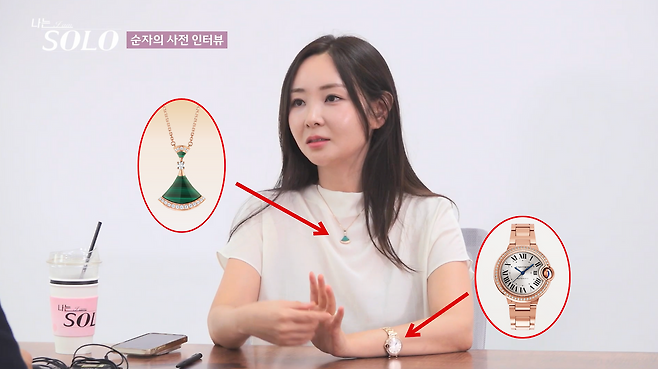 제약회사 영업직으로 근무하고 있는 순자는 샤넬 클래식 플랩백(라지 1,800만 원 상당)을 들고 등장. 여기에 약 5,300만 원대의 발롱 블루 드 까르띠에 시계, 1,020만 원대 불가리 디바스 드림 네크리스로 29기 최고 수준의 하이엔드 조합을 보여줬다.