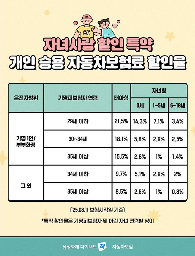 ▶삼성화재 다이렉트 자녀사랑 할인 특약 확인하기